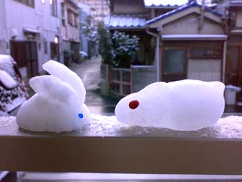 春一番なんて吹いたとたんにどっかいっちゃったじゃないのさ! (そりゃ当たり前だろが) また寒さが逆戻りですね。 …てか、雪降ったんですか!?ひゃ〜; 左のうさぎさん、大きいお耳と蒼いお目目がごっつ可愛いんですけど。