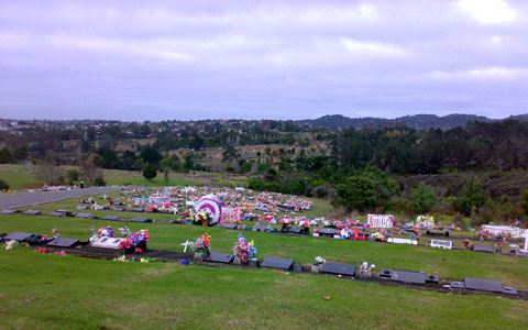 写真はオークランド郊外の巨大な共同墓地。かつて仕事で在住中にお世話になった上司Y氏のお墓参りに。