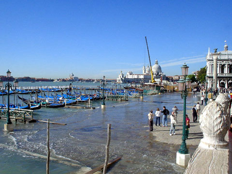 満潮になると排水口からも逆流してくる(栓をしておくらしい)昨今のVenezia