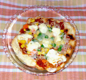 ちゃんとピザになってる〜♪(当たり前だ!)色きれいで、おいしそう。 粉モノ祭り、楽しいですね、私も作りたくなってきました。